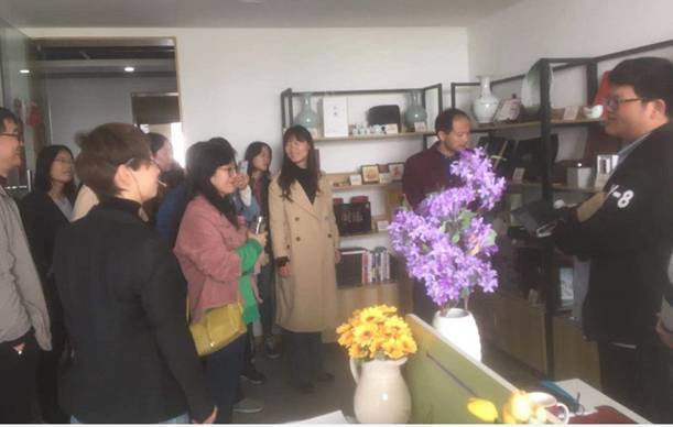 首先,全体党员教师在支部书记王黎明的带领下参观了公司创新创业工作的亮点项目——老员工创业孵化园。创业公司经理张琳、副经理田嘉、温宗和亲自迎接。田嘉副经理充当讲解员,介绍了公司创客空间的基本情况、创新创业工作情况和成效。全体党员教师分别参观了创客空间苗圃区和文创区,与公司创业员工开办的郑州梦之蓝文化传媒公司、郑州晨沐网络科技有限公司和郑州推石信息科技有限公司等创业团队进行了亲切交流,详细了解了公司老员工创业过程。参观过程中,老师们对各个创业项目颇感兴趣,纷纷询问了解,频频赞叹“员工了不起”,纷纷感叹“公司很厉害”。本次对创客空间的参观让人大开眼界、深受感触,老师们为入驻创客空间的员工的胆量和创新能力而惊喜,为公司的创新创业工作而自豪,参观活动进一步激发了工作斗志,坚定了理想信念,提升了思想境界,党员教师决心以后更加努力地上好思政课,培养更多更高思想素质的老员工,为公司创新创业工作取得更大成绩做贡献。