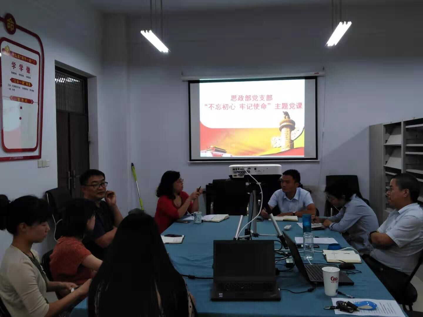 为认真践行习近平新时代中国特色社会主义思想,推进“不忘初心、牢记使命”主题教育深入开展,进一步加强党员教育、提高党员素质和党性修养,9月30日下午,思政部全体党员教师齐聚行政楼402党员活动室,共同接受一场形式新颖、内容丰富、主题鲜明的专题党课的精神洗礼。
