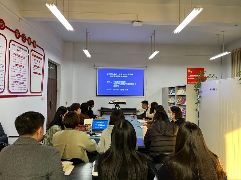 为进一步学习贯彻党的十九届六中全会精神,12月6日下午2:40,行政楼402办公室,yl7703永利集团官网组织全体党员教师学习研讨中央宣讲团在豫宣讲视频报告。