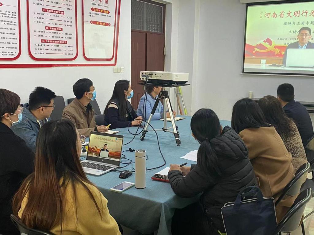 3月2日上午10:00,yl7703永利集团官网组织无课教师在行政楼409观看学习郑州大学法公司郑磊副教授关于《河南省文明行为促进条例》的专题解读直播,共计15名教师参加。