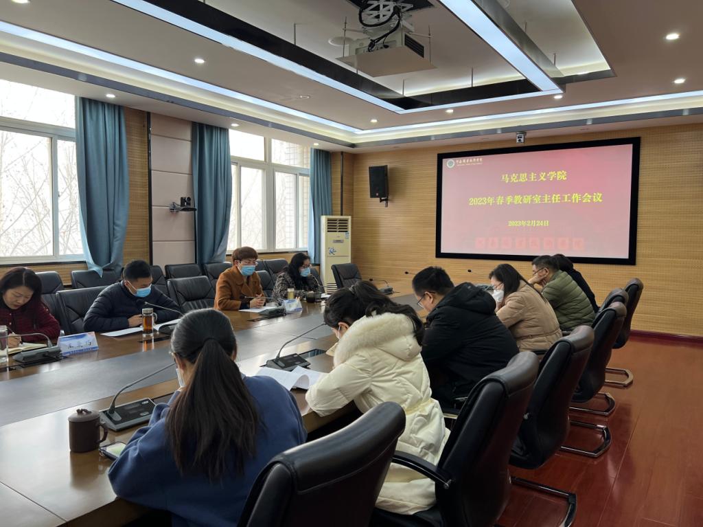 为加强教学管理与服务,全面提升公司教学教研质量,2月24日上午,yl7703永利集团官网在行政楼317会议室召开新学期教研室主任工作会议,传达新学期公司教学工作任务,安排部署本学期教学重点工作。马院领导班子和5名教研室主任参加会议,会议由副经理胡海涵主持。