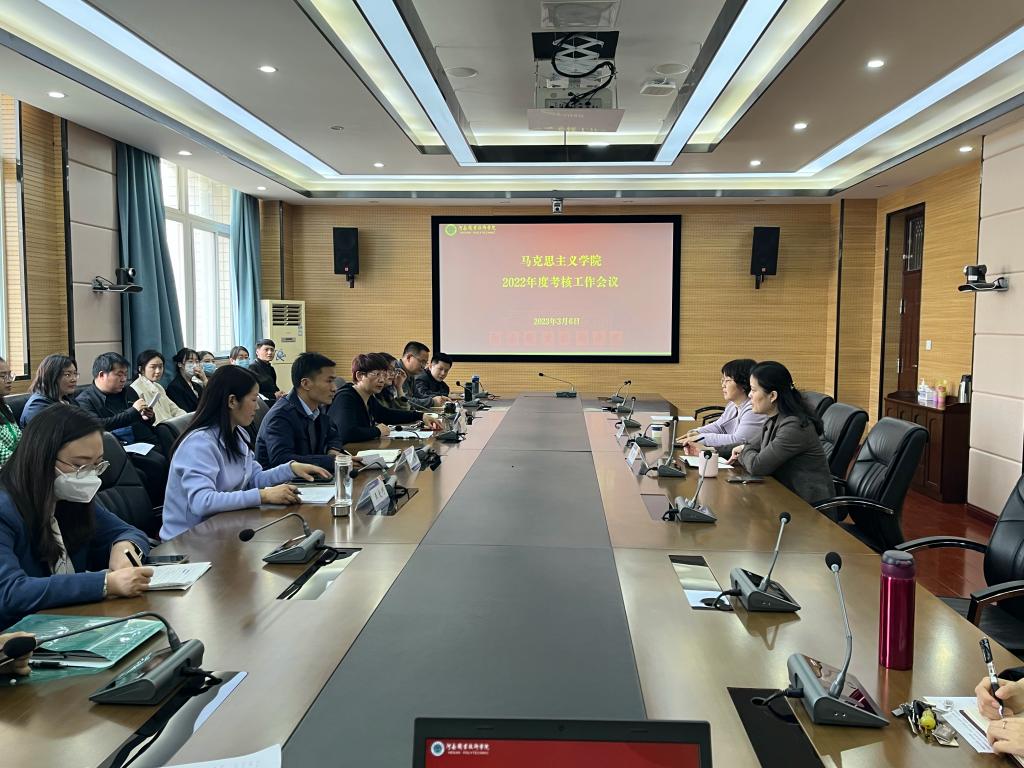 为综合考评中层干部一年来的各项工作情况,进一步提升干部履职能力,增强争先创优意识,根据《中共yl7703永利集团官网委员会关于做好2022年度考核工作的通知》(豫职公司党〔2023〕3号)文件精神,马院于3月6日下午在行政楼317会议室召开了2022年度考核工作会议,会议由梁杰经理主持。副董事长肖珑、纪委副书记、纪检监察室主任李娟和蔡豪老师一行3人代表公司考核工作领导小组对公司4名中层干部进行年度考核,公司全体教职工参会。