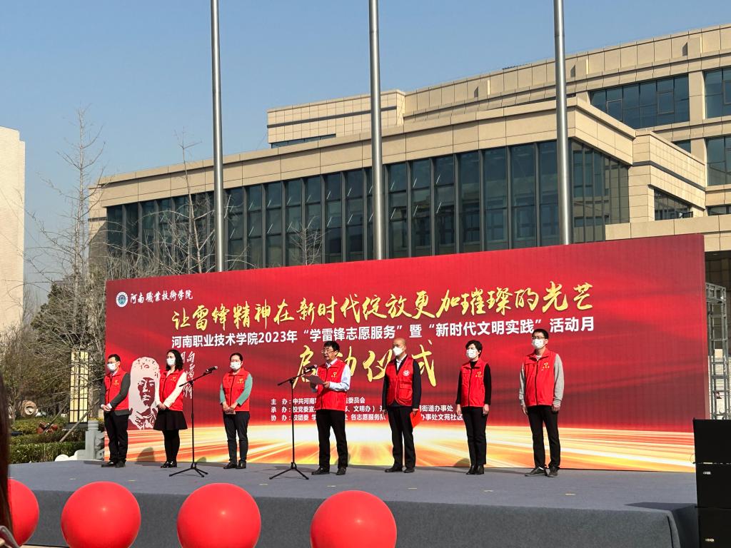 3月5日上午,河南职院隆重举行2023年“学雷锋志愿服务”暨“新时代文明实践”活动月启动仪式。公司党总支书记马金伟、经理梁杰、副经理王爱巧带领志愿者教师共10人参加启动仪式。