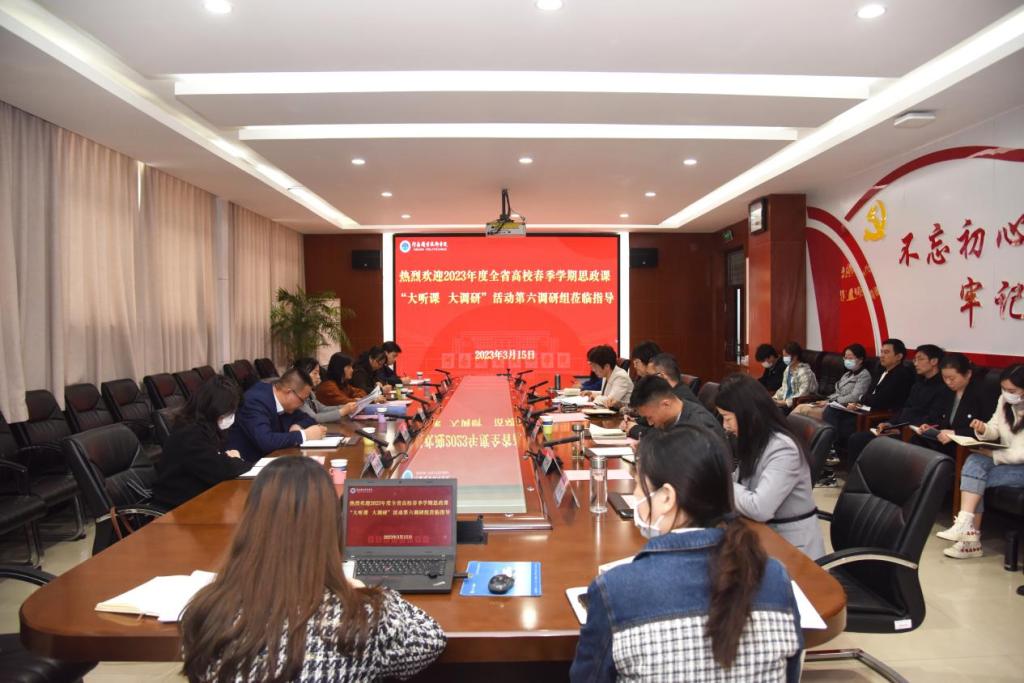 随后,专家组召开了听课反馈会和师生座谈会,对两位教师所讲授的课程给予了高度评价,认为他们的教学严格按照省委教育工委、省教育厅《关于上好高校思政课的指导意见》,并及时融入思政课《教学要点及参考资料》,通过阅读经典原著等课堂活动,用小道理讲深讲透讲活大道理,是一堂好的思政课。调研组进一步就课件的规范性、美观性以及授课内容的学理性、逻辑性提出了指导和建议。