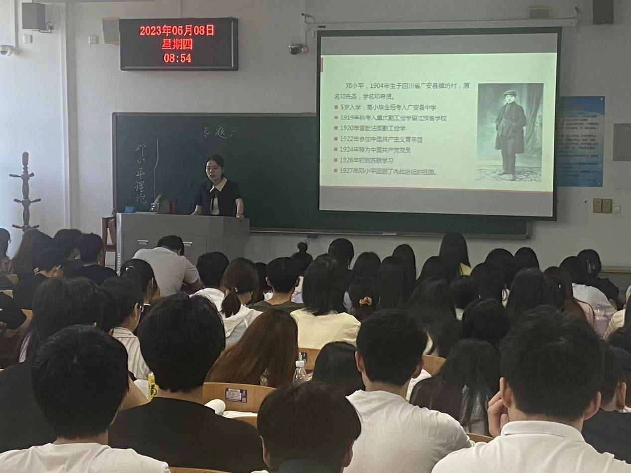 在《毛泽东思想和中国特色社会主义理论体系概论》课堂上,张倩老师以“邓小平理论”为主题,把二十大精神有机融入课堂,详细地讲解了邓小平理论形成和发展的时代背景、社会历史条件及其历史地位。张倩老师饱满的精神状态、清晰的逻辑结构和生动详实的案例展示了深厚的理论功底和教学基本功,受到听课教师的一致好评。