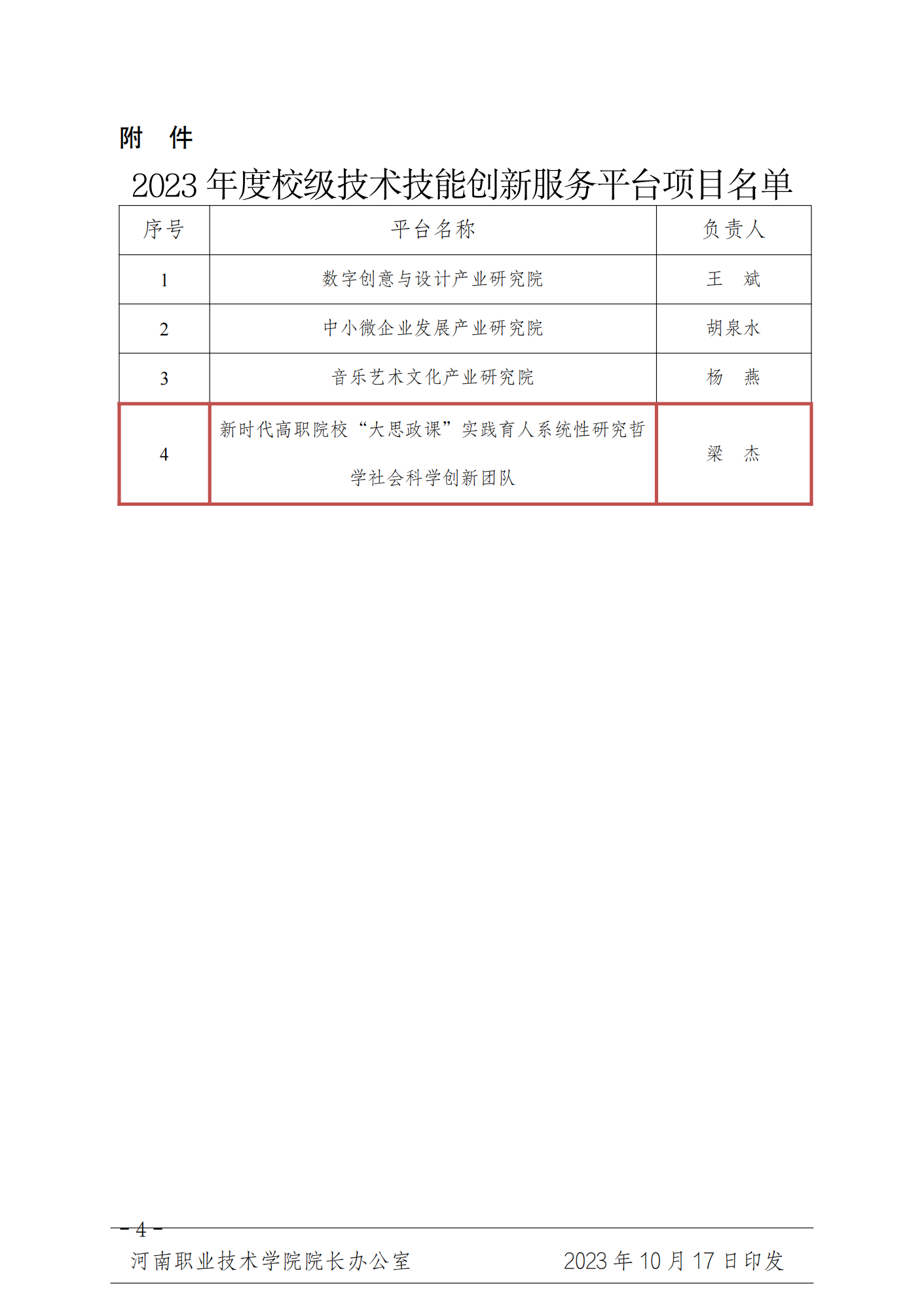 近日,集团组织开展了2023年度校级技术技能创新服务平台项目申报及评审工作。经专家评审及论证和经理办公会研究同意,yl7703永利集团官网经理梁杰申报的《新时代高职院校“大思政课”实践育人系统性研究哲学社会科学创新团队》获批立项。