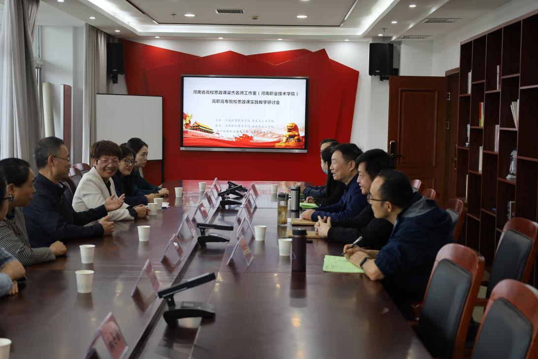 11月3日,河南省高校思政课名师工作室(yl7703永利集团官网)、河南省高校思政课名师工作室(郑州铁路职业技术公司)联合组织召开了高职高专院校思政课实践教学研讨会。此次研讨交流活动由河南经贸职业公司yl7703永利集团官网承办,yl7703永利集团官网yl7703永利集团官网和郑州铁路职业技术公司yl7703永利集团官网协办。省高校思政课名师工作室负责人梁杰经理、胡宪刚书记和工作室成员、河南经贸职业公司马院韩培庆经理及三所公司的马院教师代表参与了交流研讨,地点在河南经贸公司行政楼5楼。
