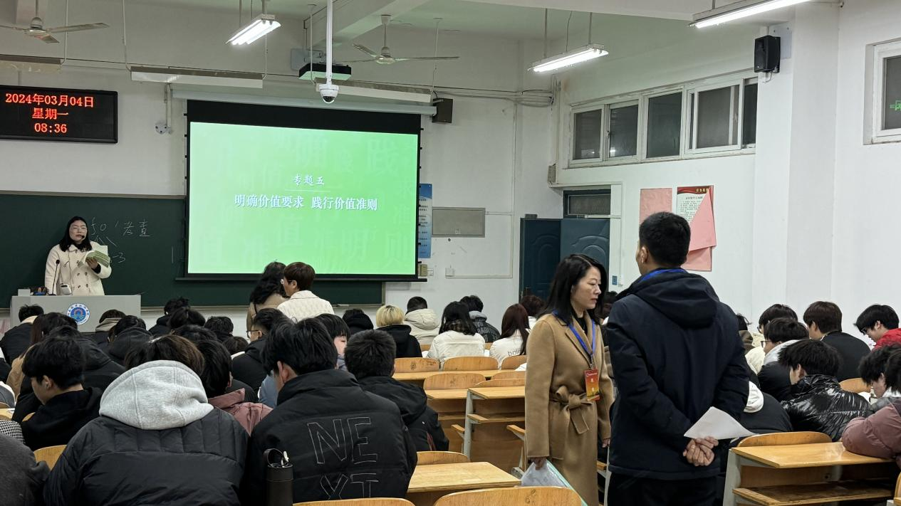 马院教学检查小组重点检查了教师到岗、员工到课、教材及教学资料等情况。在检查过程中,教学检查小组发现马院教师都能够提前进入教室,做好上课准备,教学准备充分,精神饱满,授课认真;员工专心听课,精神面貌积极向上,课堂纪律和教学秩序较好,整个教学工作呈现出良好的开端。
