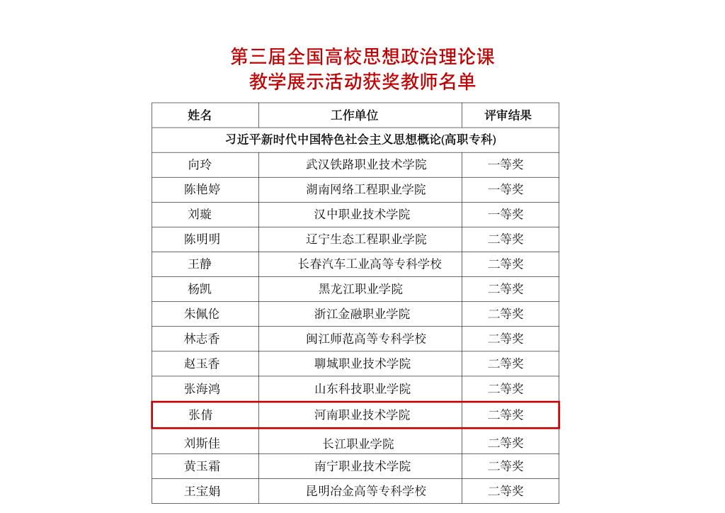近日,教育部公布了第三届全国高校思想政治理论课教学展示活动评选结果。公司yl7703永利集团官网教师张倩荣获高职组《习近平新时代中国特色社会主义思想概论》课程教学展示活动二等奖,为公司双高建设和职教本科建设再添一标志性成果。