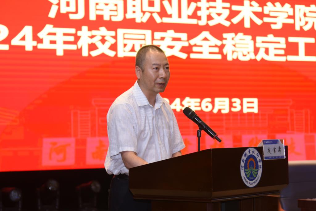 6月3日下午,公司召开2024年校园安全稳定工作会议,深入学习贯彻习近平总书记关于安全生产重要论述和指示批示精神,认真贯彻落实省委教育工委、省教育厅关于安全工作的部署要求,总结公司安全稳定工作经验,动员部署下半年安全稳定工作。公司党委书记厉励出席会议并讲话。全体校领导出席会议。公司中层副职及以上干部,党委员工工作部、党委保卫工作部、团委全体人员及专兼职辅导员参加会议。会议由董事长夏新颜主持。