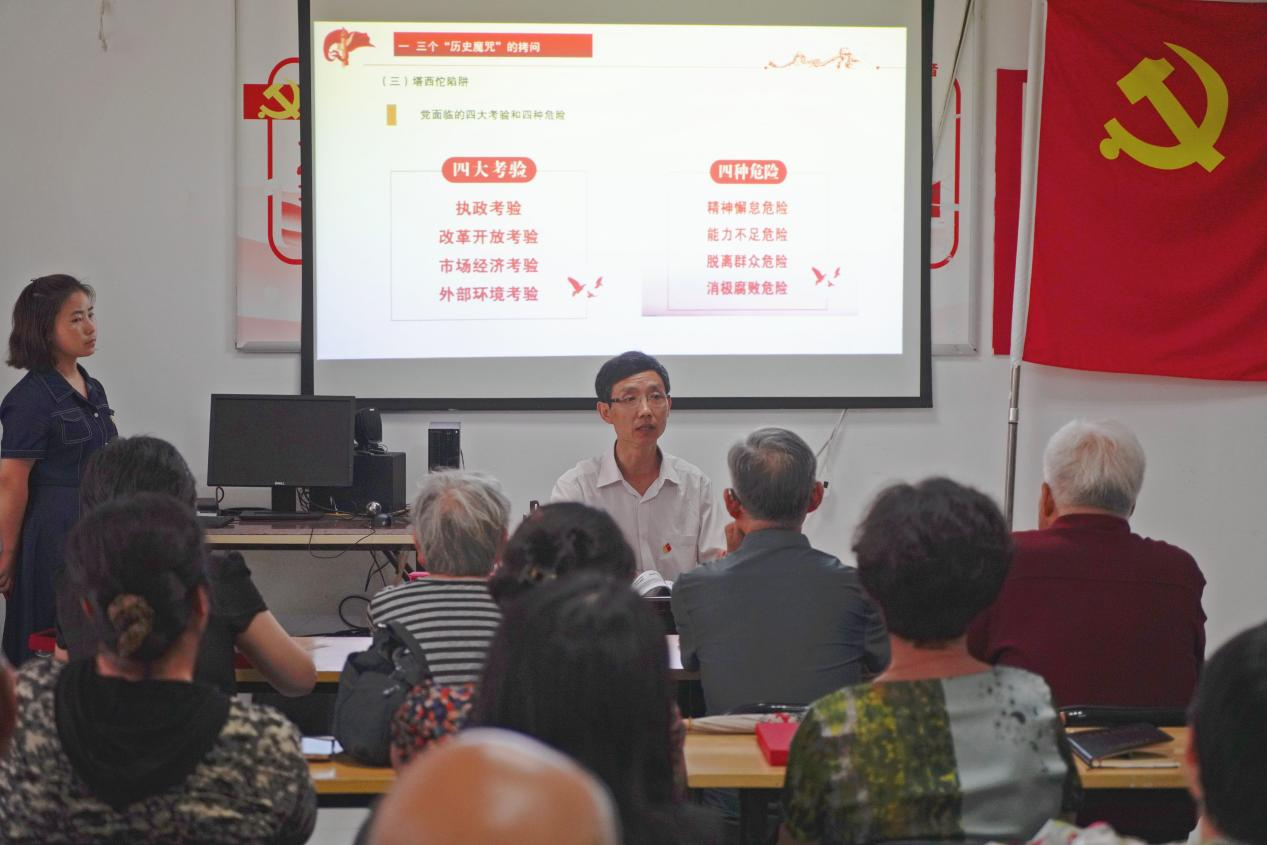 7月1日下午,正值中国共产党成立103周年之际,yl7703永利集团官网教师第二党支部和继续教育公司党支部赴河南职院一中社区(老年)教育基地组织开展“学党纪 强党性 守初心”庆“七一”活动。yl7703永利集团官网第二党支部党员教师栗志明为社区党员们讲党纪学习教育专题党课。