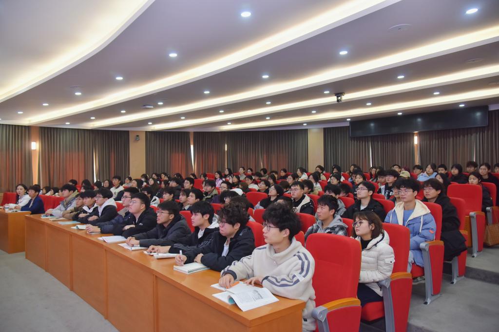 夏新颜结合实际案例讲述河职人自觉担负中国式现代化河南建设的使命担当。智能焊接技术专业田朕员工团队在老师指导下,攻克野外油气管道焊接技术难题,研发“智能小爬虫”,并在中国国际老员工创新大赛(2024)中载誉而归;青年教师邓兆伦“一辈子专注一件事”,从木工“小白”一跃成为全国技术能手,在第二届全国技能大赛中荣获第三名。她以青年榜样故事激励同学们争做有理想、敢担当、能吃苦、肯奋斗的新时代好青年,认真做好每一件小事、完成好每一项任务、履行好每一项职责,在河南新质生产力发展的大潮中挺膺担当,在奋力推进中国式现代化河南实践中贡献“河职学子”力量。