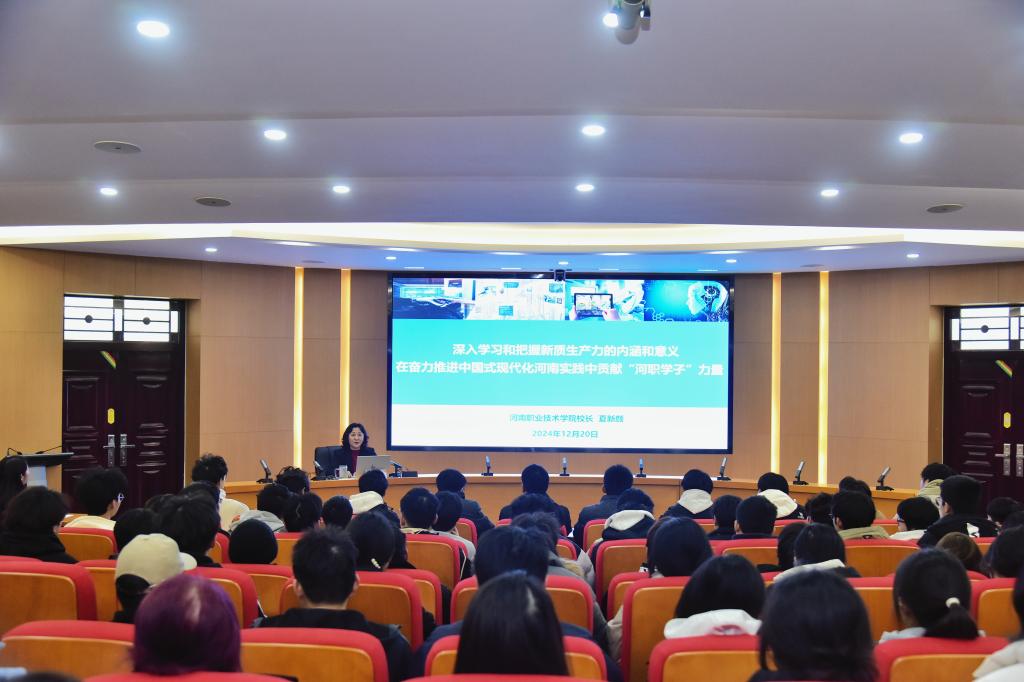 夏新颜围绕“什么是新质生产力”“为什么要发展新质生产力”“我省如何因地制宜发展新质生产力”“公司如何更好地服务河南制造业强省建设”“青年员工如何担负起中国式现代化河南建设的时代使命”等五个方面,采用问题链式方法,结合生动翔实的案例,层层递进,深入浅出,对新质生产力的内涵、发展新质生产力的重大意义、河南省因地制宜发展新质生产力、公司主动对接“7+28+N”产业链群加强专业建设和深化产教融合等方面进行全面系统深入解读。
