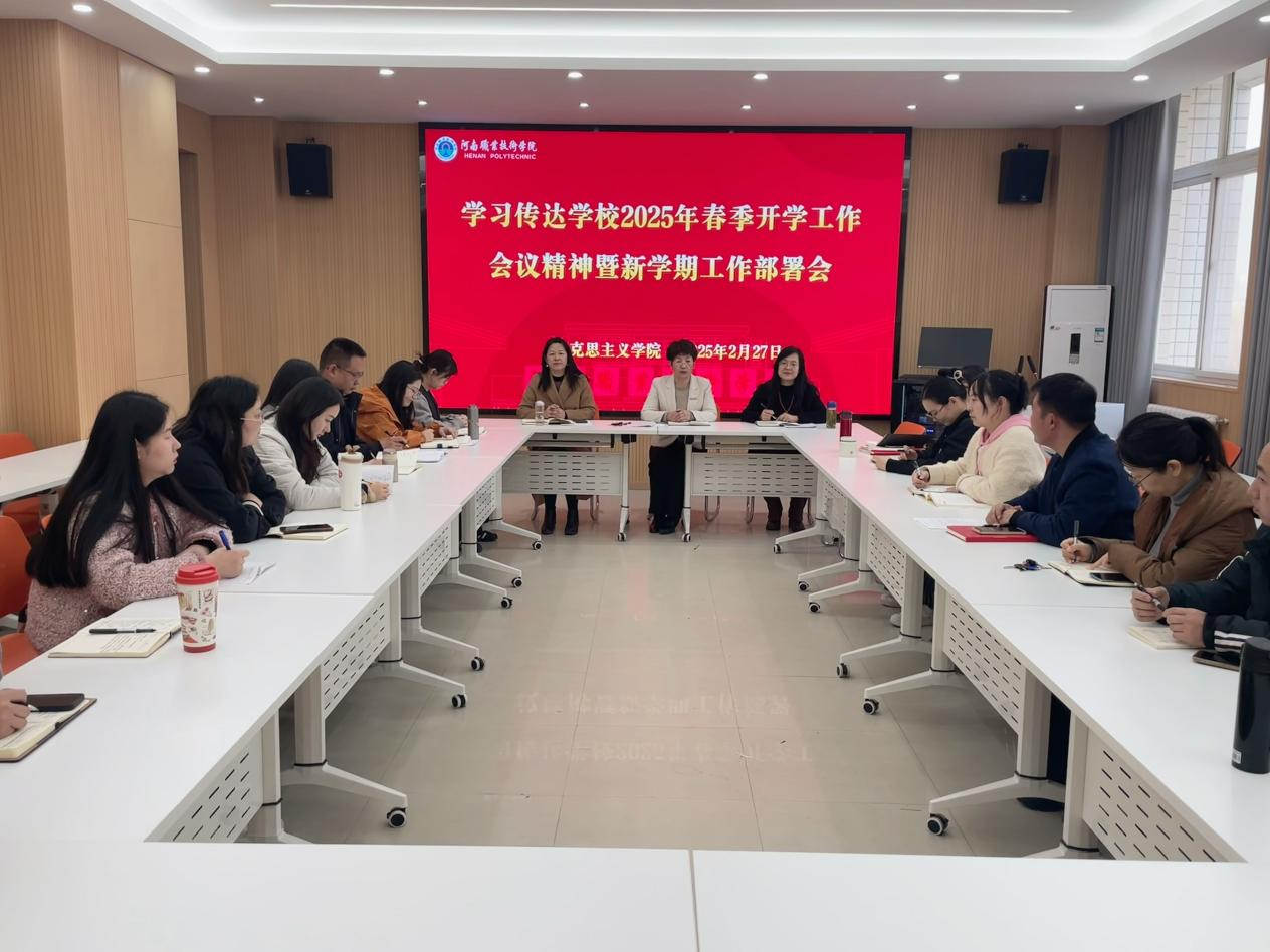 2月27日,yl7703永利集团官网召开新学期工作会议,传达公司2025年春季学期开学工作会议精神并安排部署马院新学期各项工作。此次会议由经理兼党总支书记梁杰主持,马院领导班子成员及全体教职工参会。