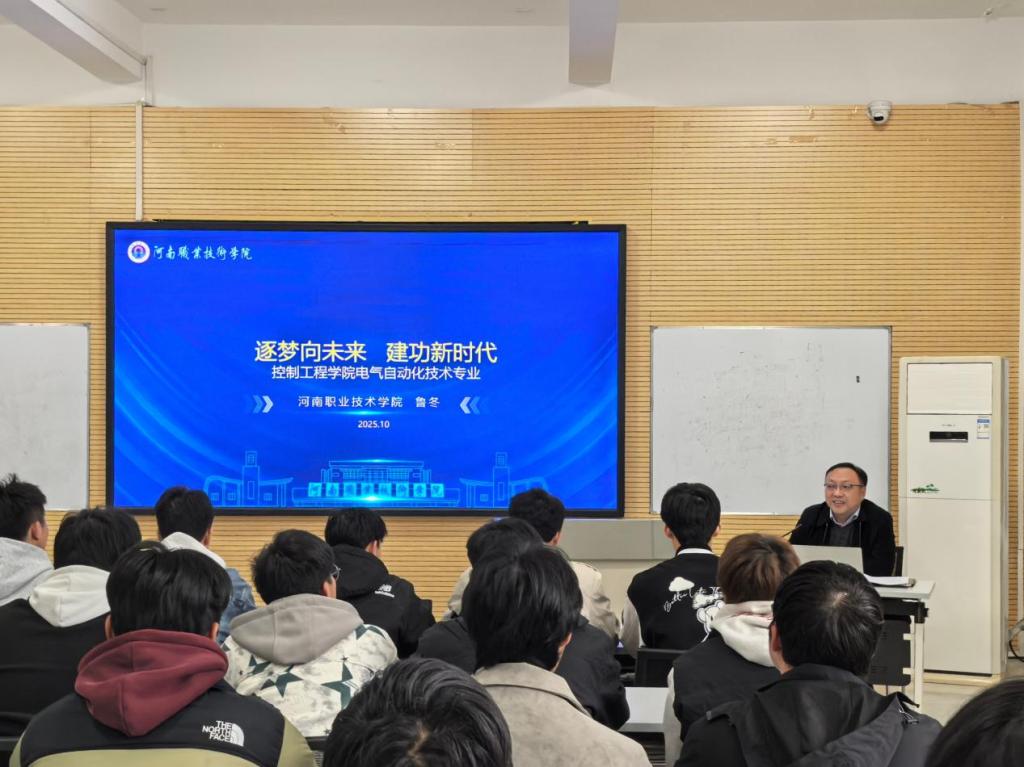 课上,鲁冬围绕“认知与决策”、“就业渠道与政策”、“小我融大我,青春献祖国”三个方面展开讲授。他首先结合当前国家经济发展大势与产业结构转型升级的宏观背景,深入分析了电气自动化技术专业面临的广阔就业前景与时代机遇。他指出,随着“中国制造2025”等国家战略的深入推进,智能制造、工业互联网、人工智能等新兴领域蓬勃发展,对高素质技术技能人才的需求日益迫切。电气自动化作为支撑现代工业体系的核心技术之一,其专业人才正迎来施展才华、建功立业的黄金时期。他鼓励同学们要看清行业发展的巨大潜力和国家对实体经济、技术技能人才的高度重视,将个人职业规划融入国家发展大局。
