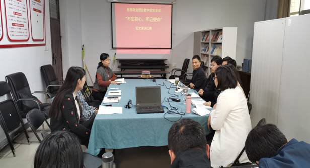 12月5日下午2:30,思政部全体教师在402会议室召开集体备课会,帖琳娜老师和胡海涵老师分别就《马克思主义中国化及其发展》、《弘扬中国精神》等内容进行了展示。