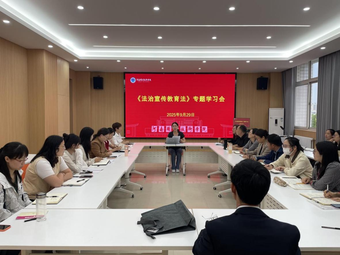 学习会上,程颖老师围绕《法治宣传教育法》的立法背景、核心要义及对思政教育的指导意义作了专题分享。她重点解读了该法作为我国首部专门法治宣传教育法律的重要地位,阐述了其将普法工作从政策层面提升至法律层面的里程碑意义,并详细分析了法律中确立的“公民终身法治教育制度”和“谁执法谁普法”普法责任制等核心创新制度。