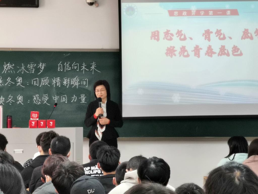 李桂贞书记认真听了张倩老师的授课,并对张倩老师的课做了高度评价。她认为,张倩老师的课理论联系实际,深入浅出,紧密结合北京2022年冬奥会赛事,向同学们解读了中国制度、中国科技、中国文化等元素,全面立体展示了中国阳光、富强、开放、充满希望的国家形象,号召同学们学习各国奥运健儿激情拼搏的故事,坚定信心,勇毅前行,为实现第二个百年奋斗目标而不懈努力。整个教学环节组织有序,生动活泼,达到了开学思政第一课的教学目的,是一堂高质量、高水准的思政课。