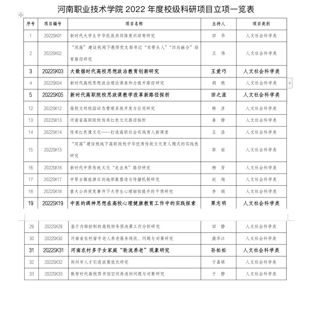 根据《yl7703永利集团官网科研项目管理办法(试行)》(豫职院〔2022〕60号)精神与《yl7703永利集团官网关于组织申报2022年度校级科研项目的通知》要求,公司对申报的2022年度校级科研项目进行了初审和专家盲审,确定了立项研究项目。