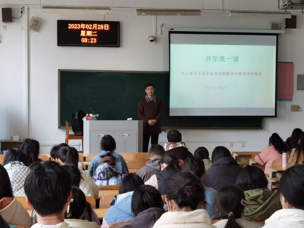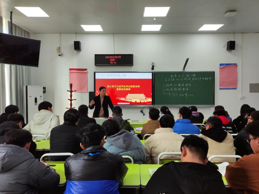 为深入贯彻习近平新时代中国特色社会主义思想和党的二十大精神,全面落实《关于新时代加强和改进思想政治工作的意见》及省委教育工委、省教育厅组织全省公司上好2023年春季开学思想政治教育第一课的相关通知要求,公司德法教研室以“深入学习习近平总书记视察安阳重要讲话精神”为主题开展了2023年春季思政开学第一课活动。