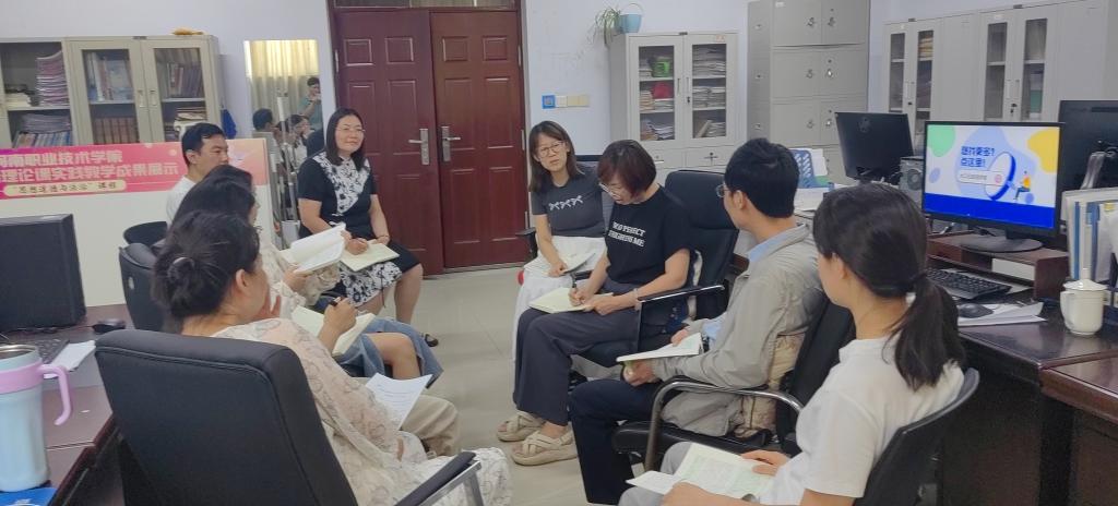 会上,刘丽丽结合德法课的教学内容和特点,介绍了如何准确、恰当的将章节内容与全会精神有机融入,并对每个章节融入的知识点进行一一说明。随后教师们在案例选取、理论知识点选取等方面进行讨论,表示要在讲准、讲深、讲透、讲活上下功夫,做好党的创新理论宣讲融入教学,让党的创新理论润泽青年。