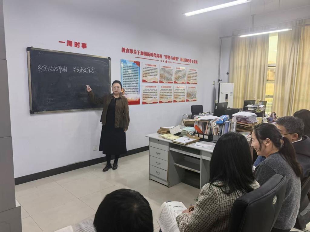 9月18日下午,“形策”教研室在508办公室开展集体备课活动。吕洛乐针对第一教学专题《纪念抗战胜利 坚定民族信念》进行示范说课,李雪杰进行一周时事评述。
